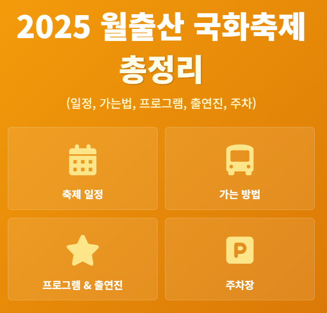 2025년 영암 월출산 국화축제의 모든 것! '추억의 동화'를 주제로 펼쳐지는 1억 송이 국화 향연의 축제 일정, 알리·벤·홍지윤 등 예상 출연진 라인업, 주요 프로그램(오로라 쇼), 그리고 가장 중요한 교통편, 주차장, 셔틀버스 정보까지 완벽하게 총정리했습니다.
