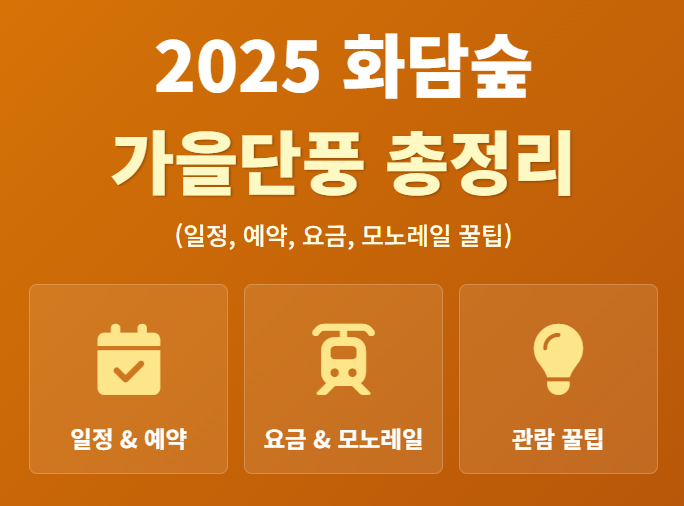 2025년 화담숲 가을 단풍 여행의 성공은 '31일 전 야놀자 예매'와 '모노레일 40분 법칙'이라는 두 가지 키워드에 달려있습니다. 조금은 치열한 준비 과정이 필요하지만, 그 끝에서 마주하게 될 붉게 물든 숲의 장관은 모든 노력을 보상하고도 남을 감동을 선사할 것입니다. 이 가이드와 함께 가장 완벽한 가을날의 추억을 계획해 보세요.